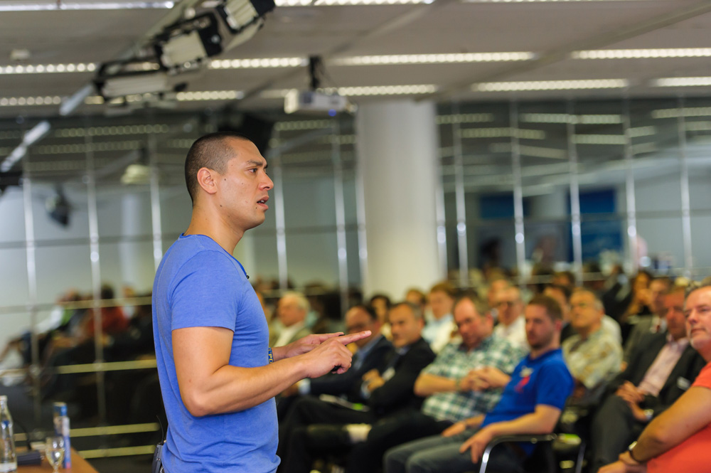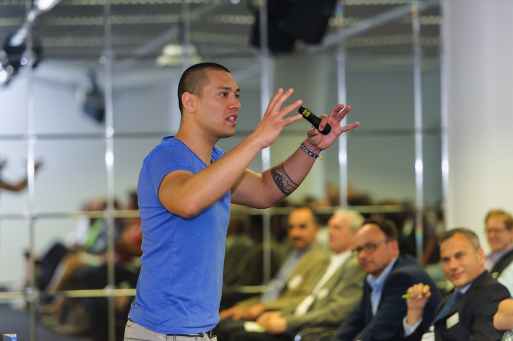 So wie die CAREERS LOUNGE es Persönlichkeiten ermöglicht, ihre beruflichen Wünsche zu realisieren und sich effizient weiterzuentwickeln, richtet sich Steve Kroeger an sein Publikum mit zentralen Fragen des Lebens. Er fordert sie auf, sich nicht mit Alltagsroutine zufriedenzugeben, sondern sich selbst zu verwirklichen und Träume zu leben, auch wenn dies mit Risiken verbunden ist. Wie er selbst seine Routine unterbricht, demonstrierte er eindrucksvoll: Erstmalig war bei diesem Vortrag sein im Juni dieses Jahres geborener kleiner Sohn dabei.